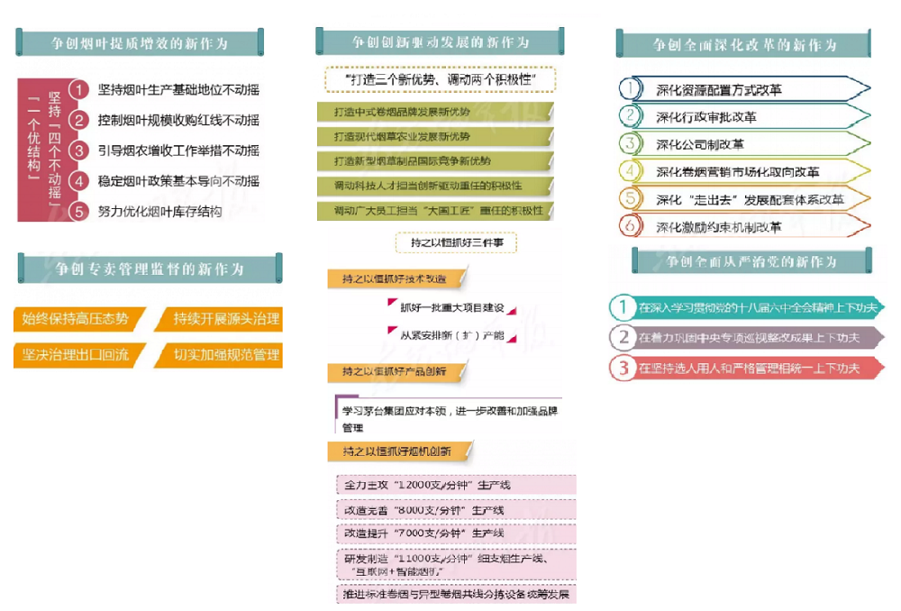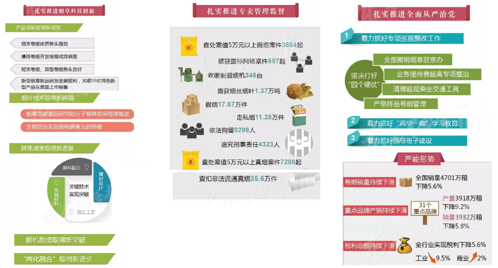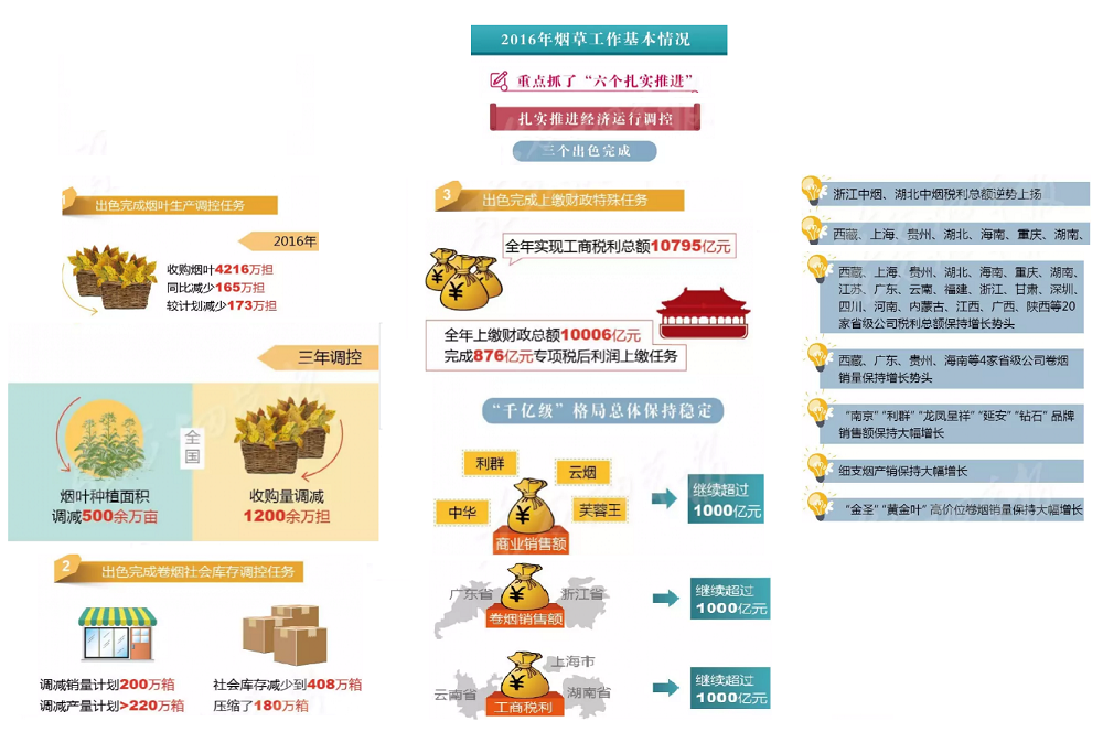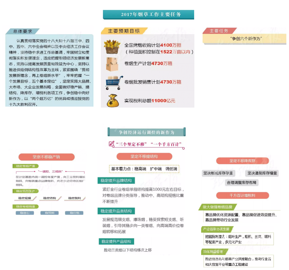 2017年全國煙草工作會(huì)議在北京召開,國家局局長(zhǎng)凌成興在會(huì)上作了題為《堅(jiān)持穩(wěn)中求進(jìn)總基調(diào) 爭(zhēng)創(chuàng)穩(wěn)中向好新作為以“兩個(gè)超萬億”優(yōu)異成績(jī)迎接黨的十九大勝利召開》的報(bào)告。